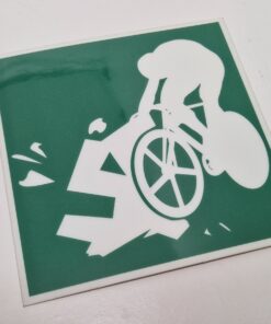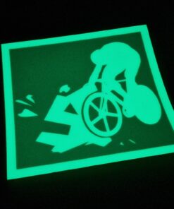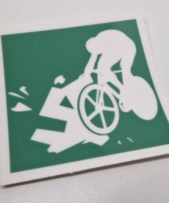 Sticker „KEINE REIFENBREITE by REGINES RADSALON“ (Rettungsschild, Glow in the dark! – mehrere Größen!)