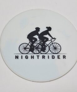 Du bist ein Nachtschattengewächs? Deine Fahrradbeleuchtung hört auf zwei Namen, Busch und Müller, und macht der „Varta Volkssturm“ Konkurrenz? Dann ist dieser Sticker etwas für dich und dein Rad: zwei Radfahry die vor dem Mond als Silhouetten erkennbar sind, darunter der Schriftzug „Nightrider“. Und das beste: er leuchtet im Dunkeln!