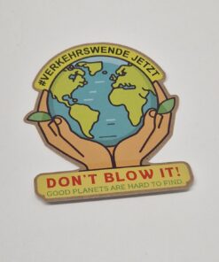 Wir haben nur einen Planeten – und einen neuen zu finden ist verdammt schwer. Daher dieser Sticker, der zur sofortigen Verkehrswende zu Gunsten unseres Planeten aufruft.